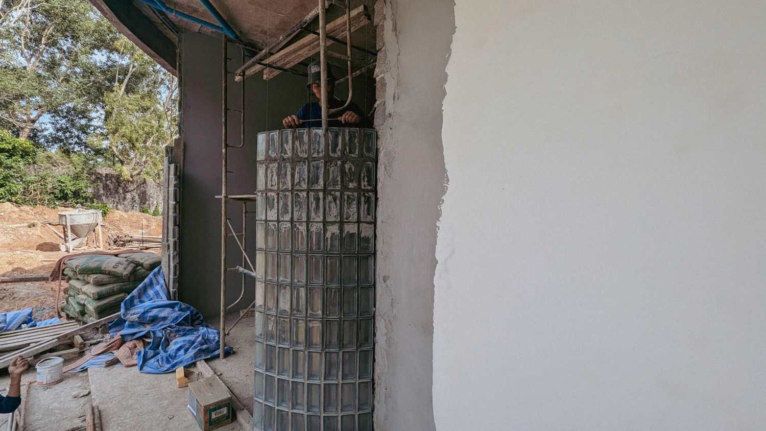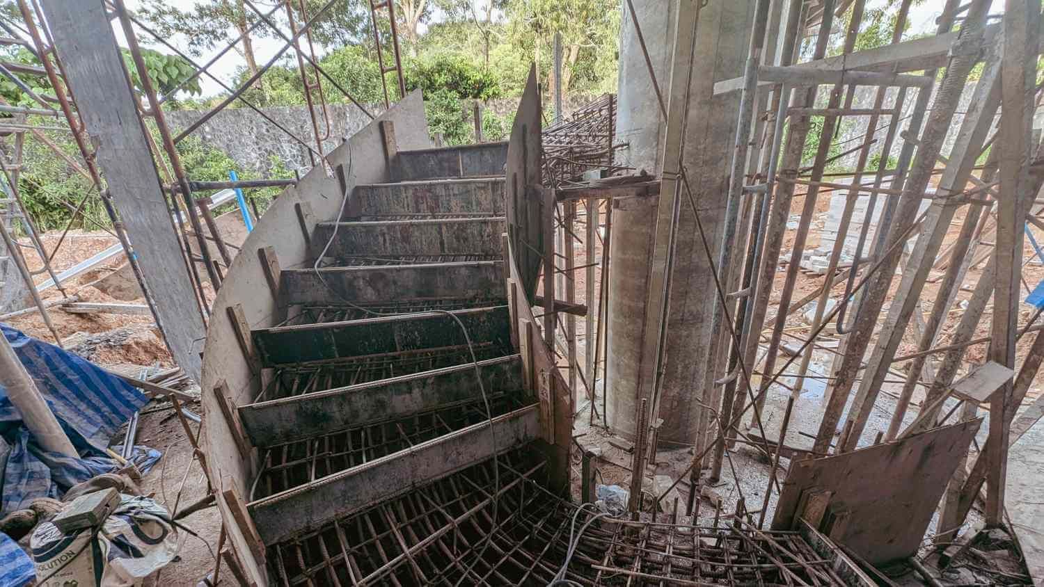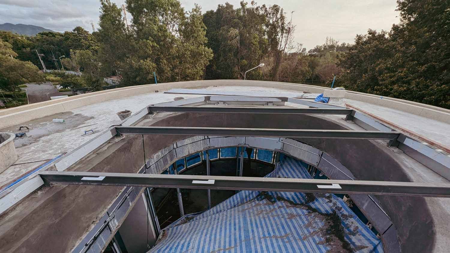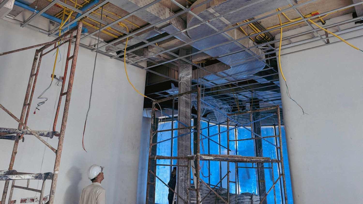 Completed the installation of external air conditioning units on the roof and preparation of internal walls for underpainting. Assembled the spiral metal staircase and began work on painting. Poured the screed with a slope on the terrace and applied penetrating waterproofing. Installed glazing on the facade of the building and installed internal glass partitions. Started tiling the walls of the bathrooms and shower room. Applied decorative sandwash coating to the facade and started installation of the suspended ceiling support frame.