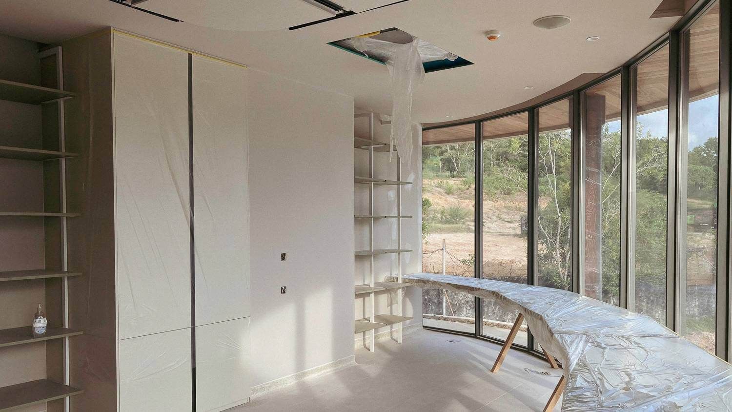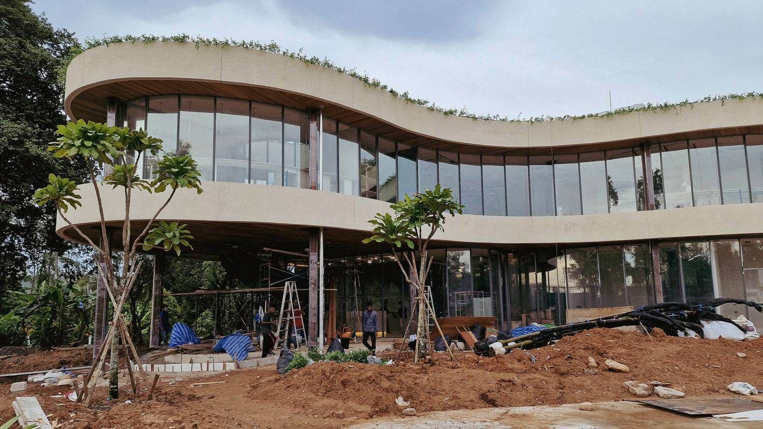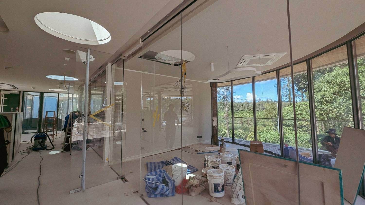 The finishing works on the office decoration, the equipment connection, and the furniture assembly have been completed. The landscaping work has also been finished.