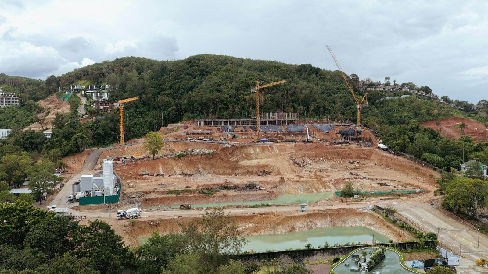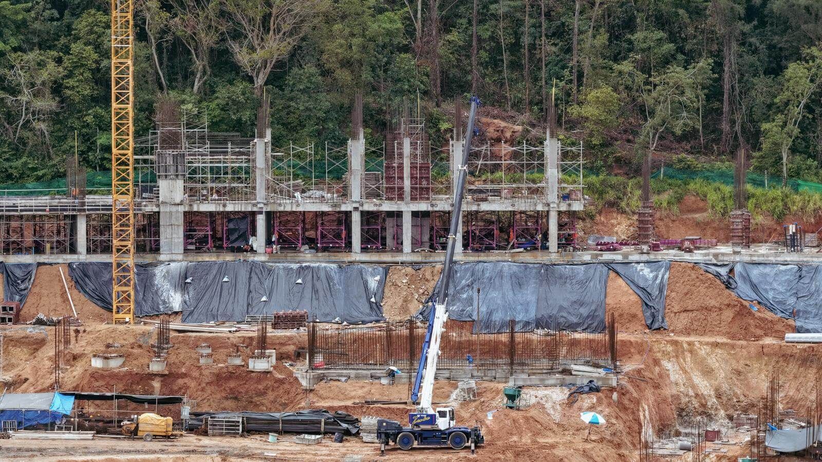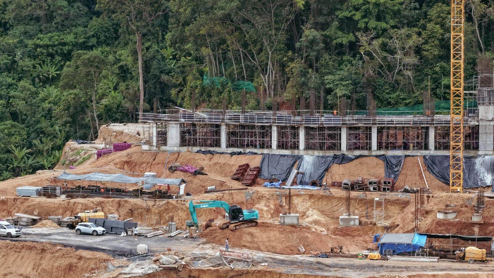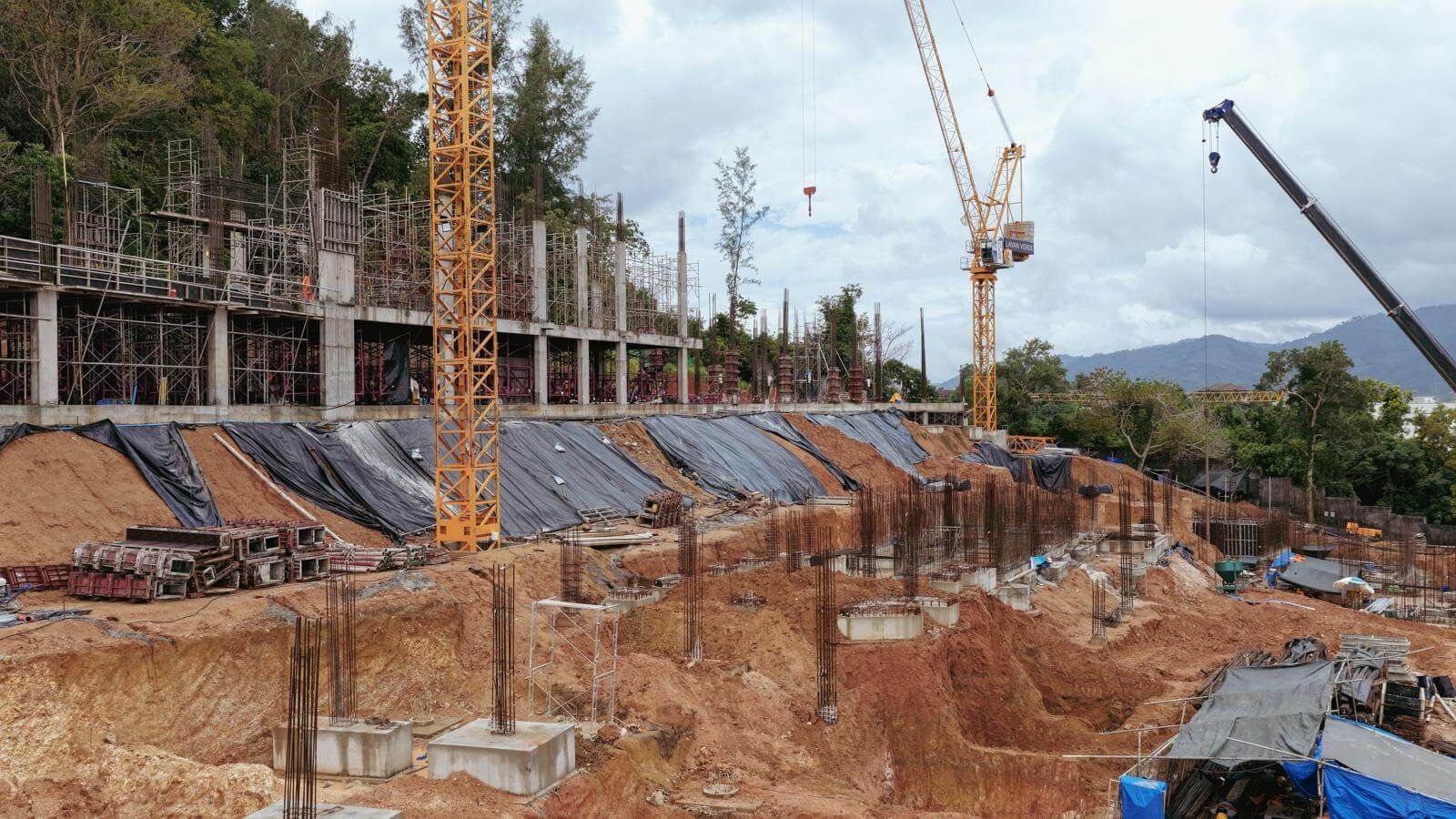 As of the reporting date, a total of 188,620 m³ of soil has been excavated and 2,226 m³ of concrete has been cast. Significant progress has been made on Building A5: In Zone 1, formwork and reinforcement installation for the second floor is ongoing; In Zone 2, formwork installation for the third floor is in progress; In Zone 3, the first-floor slab has been cast, and column installation has commenced. Foundation and structural works for the water storage tanks are underway for both Buildings A2.1 and A2.2. At Building A3.1, pile head trimming and foundation construction are in progress. Earthworks continue in the areas of Buildings BM1 and BM2.