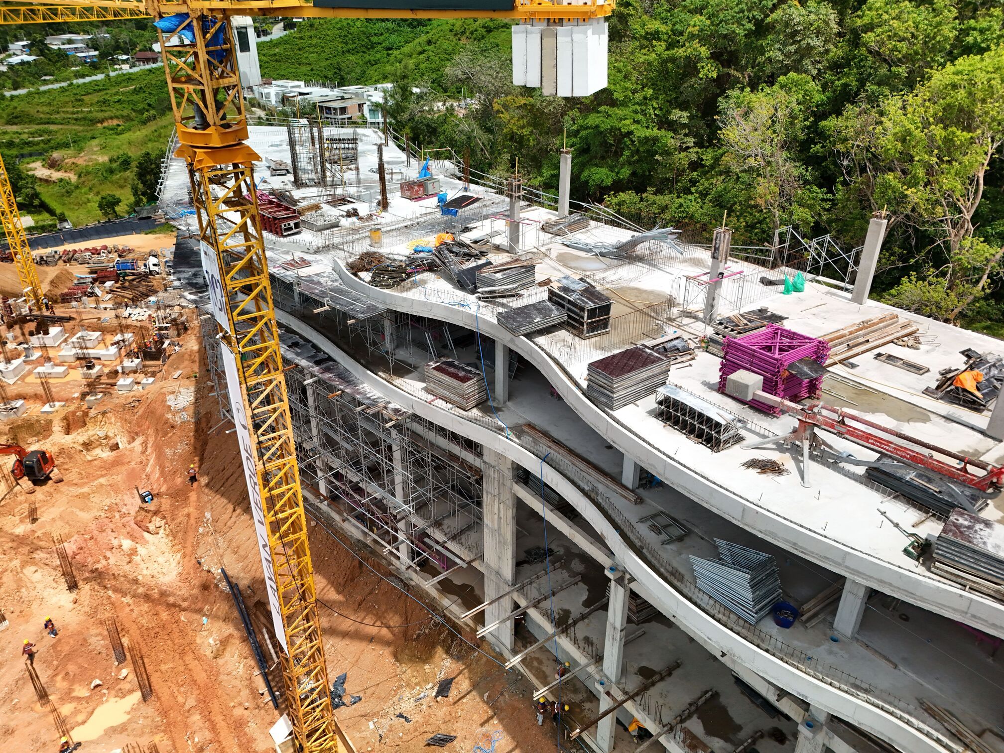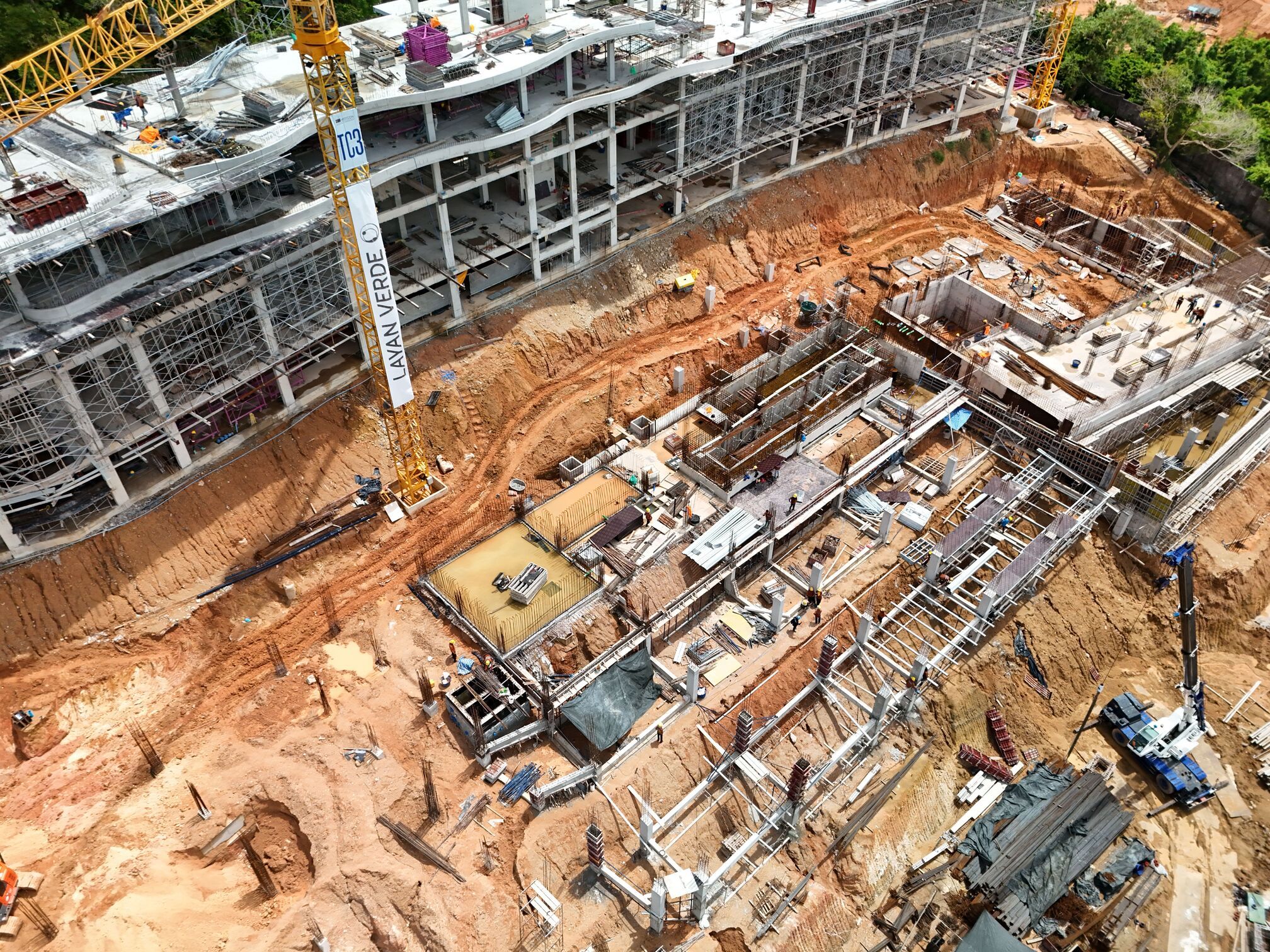 In Building A5, the floor slab of the 5th floor in Zone 1 has been poured; the construction of the columns on the 5th floor of zone 2 and 4th floor of zone 3 is ongoing. Foundation and structural works for the water reservoirs are nearing completion for Buildings A2.1 and A2.2. Building A3.1 foundations work continues. A total of 4,806 m³ of foundations and structural frame elements have been cast.