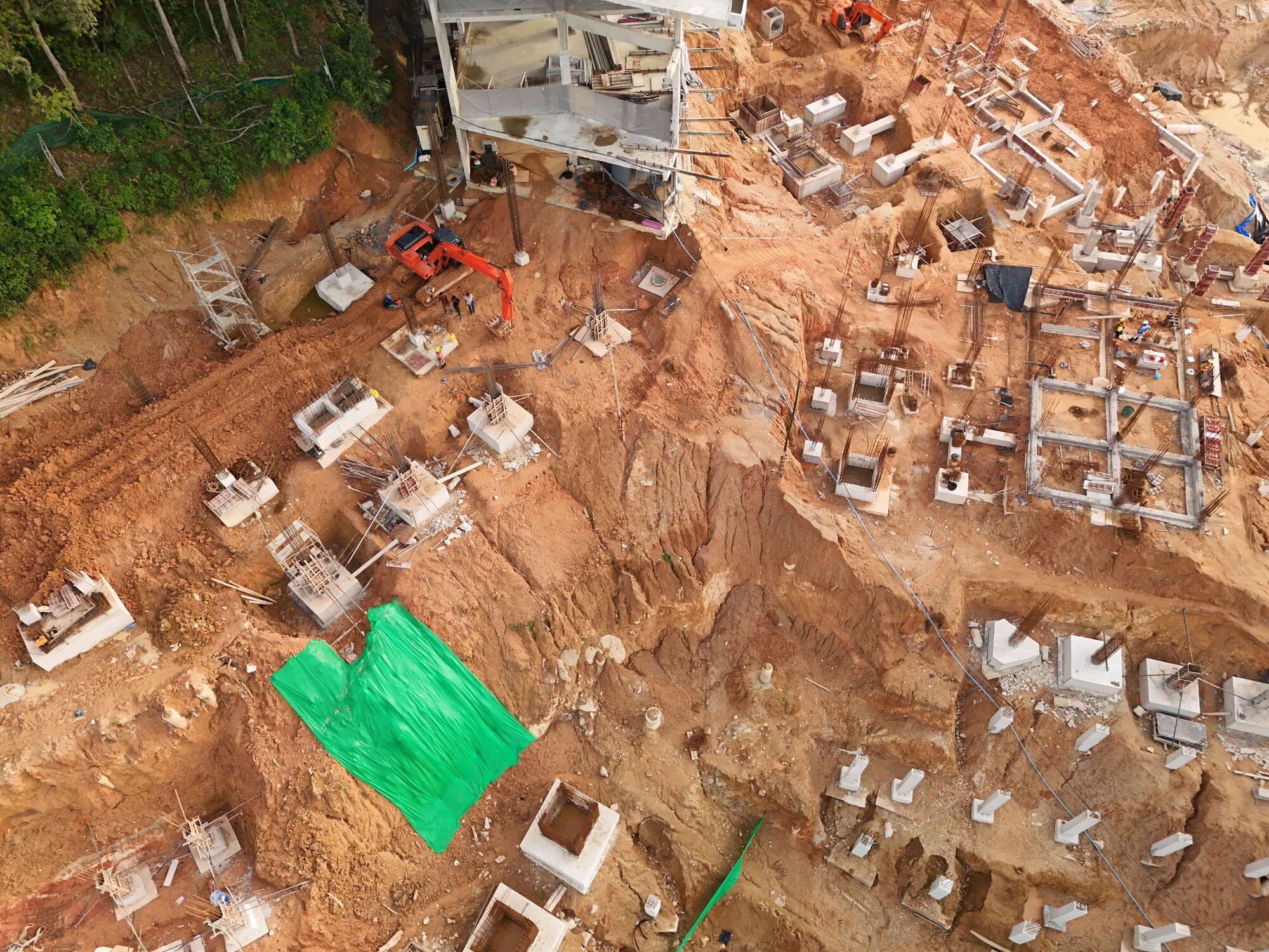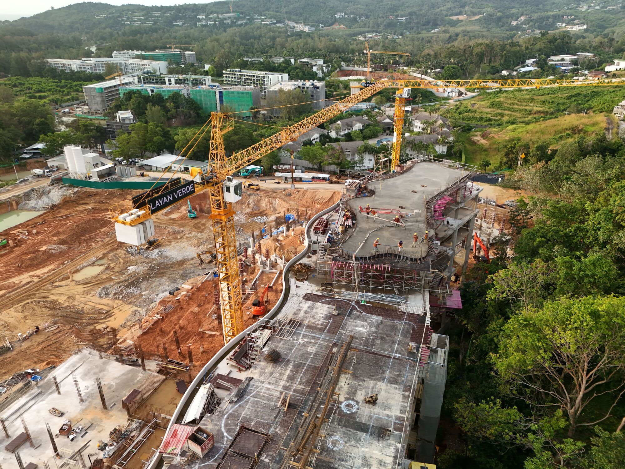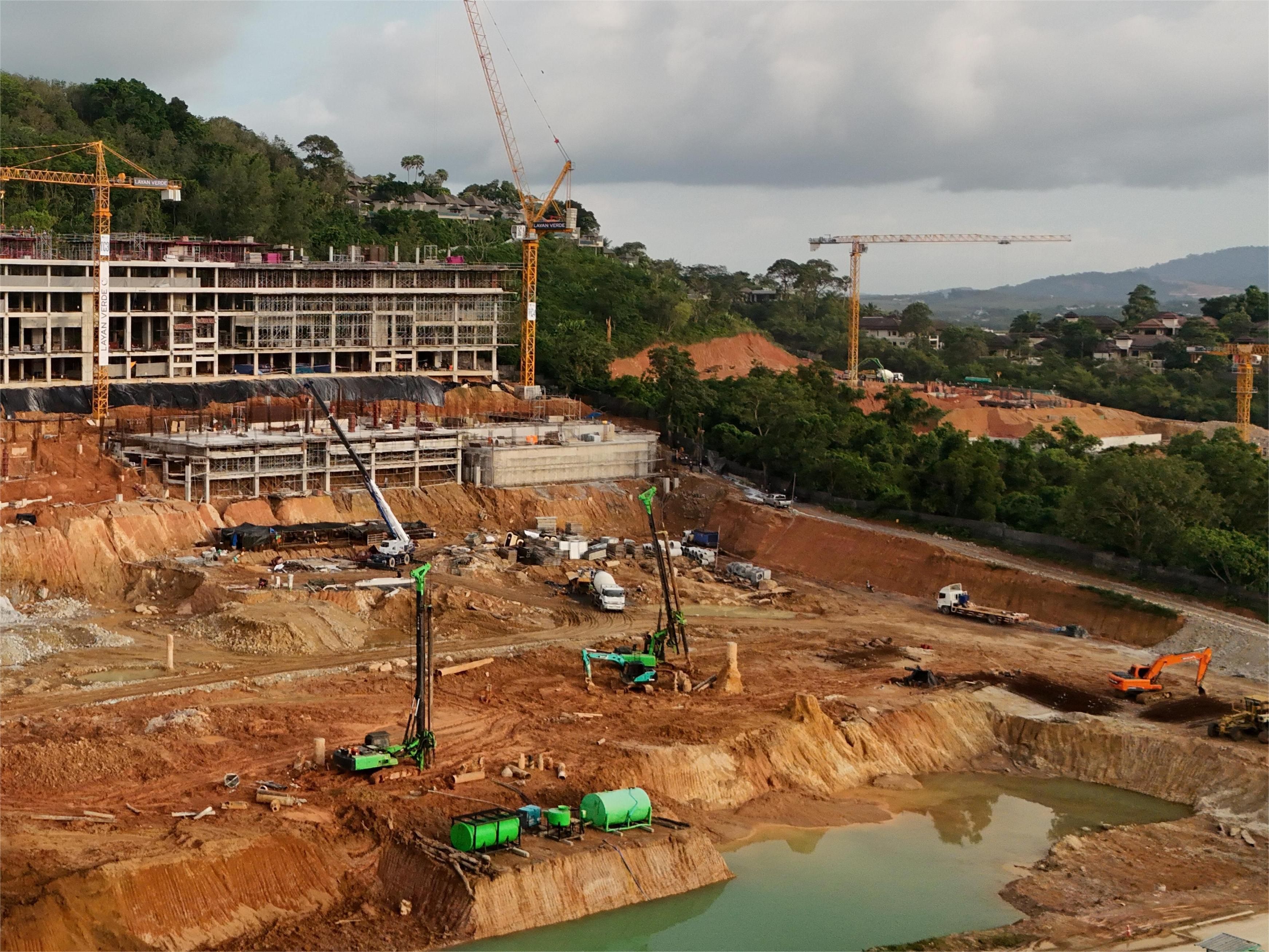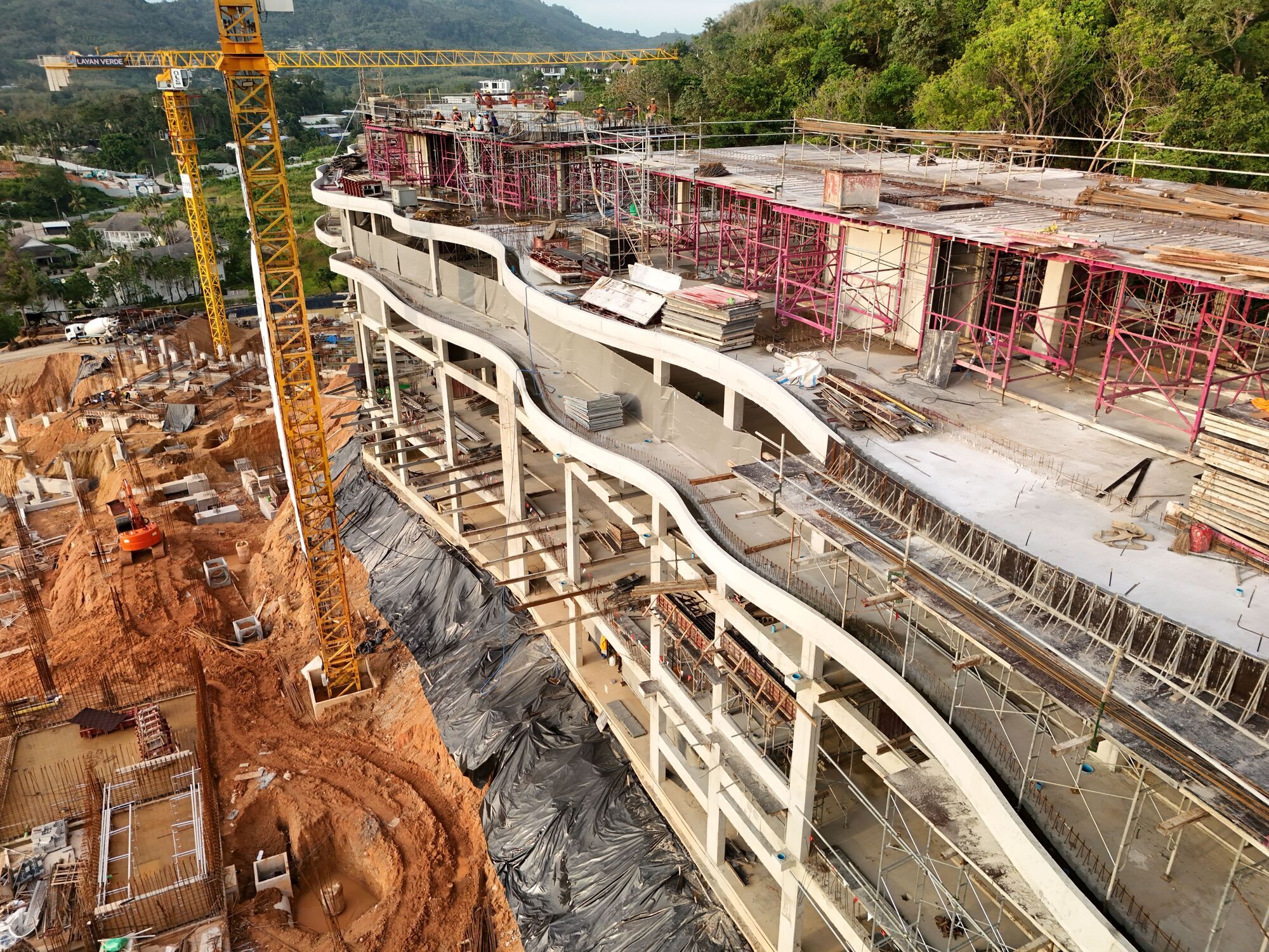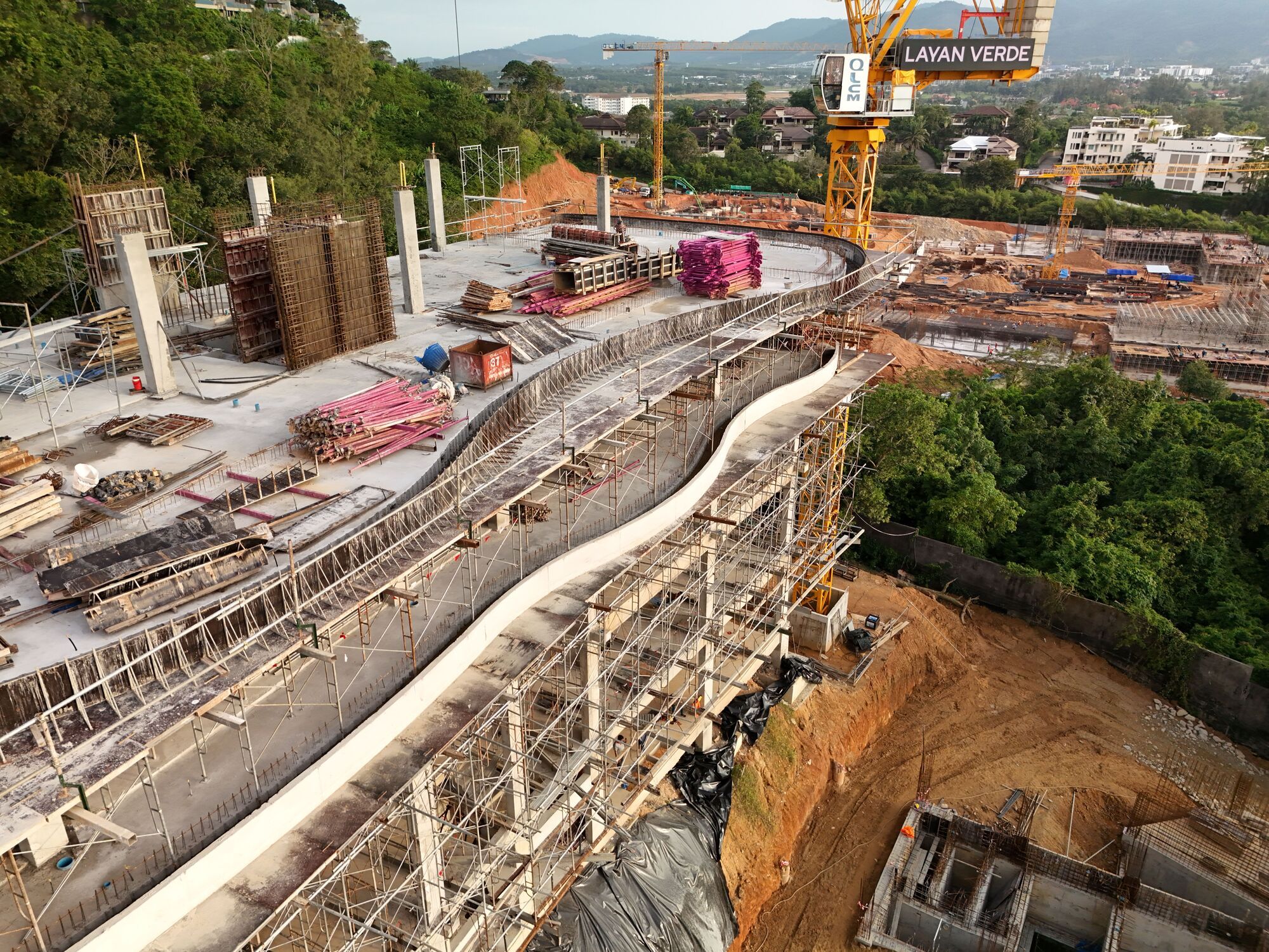 A total of 1,701 piles are installed at the Layan Verde construction site. Earth excavation works continue, with 240,540 m³ of soil removed to date. In Building A5, casting of the 5th-floor roof slab in Zone 1 is complete; column construction for the 5th-floor roof slab continues in Zone 2; post-tensioning of the 5th-floor slab is in progress in Zone 3. Waterproofing of the foundations for Buildings A2.1 and A2.2 continues. Foundation works for Buildings A3.1 and A4 are ongoing. Pile installation for Building B8 is complete, and pile installation for Building B9 is in progress. A total of 5,790 m³ of concrete has been placed for foundations and structural frame elements.