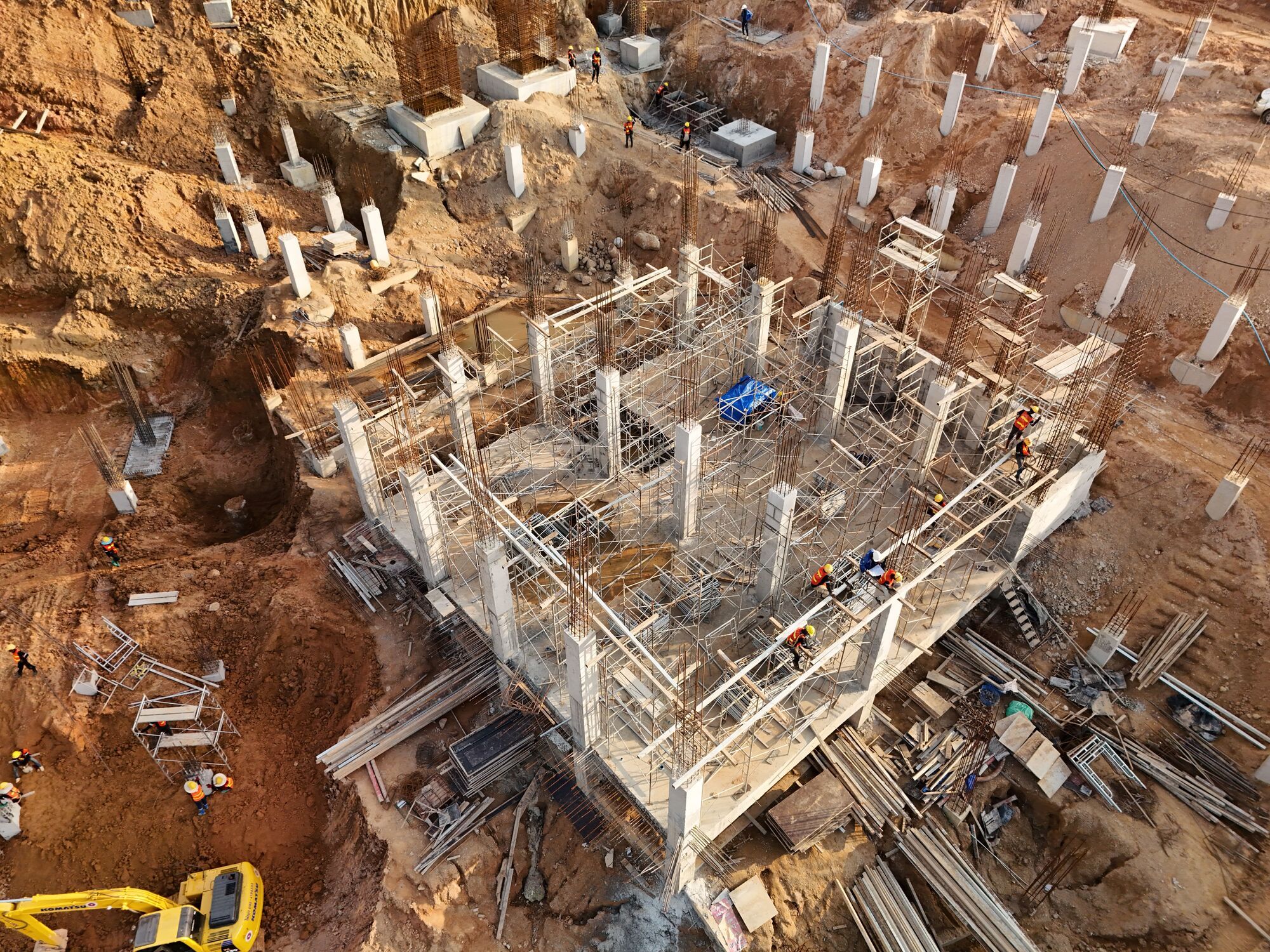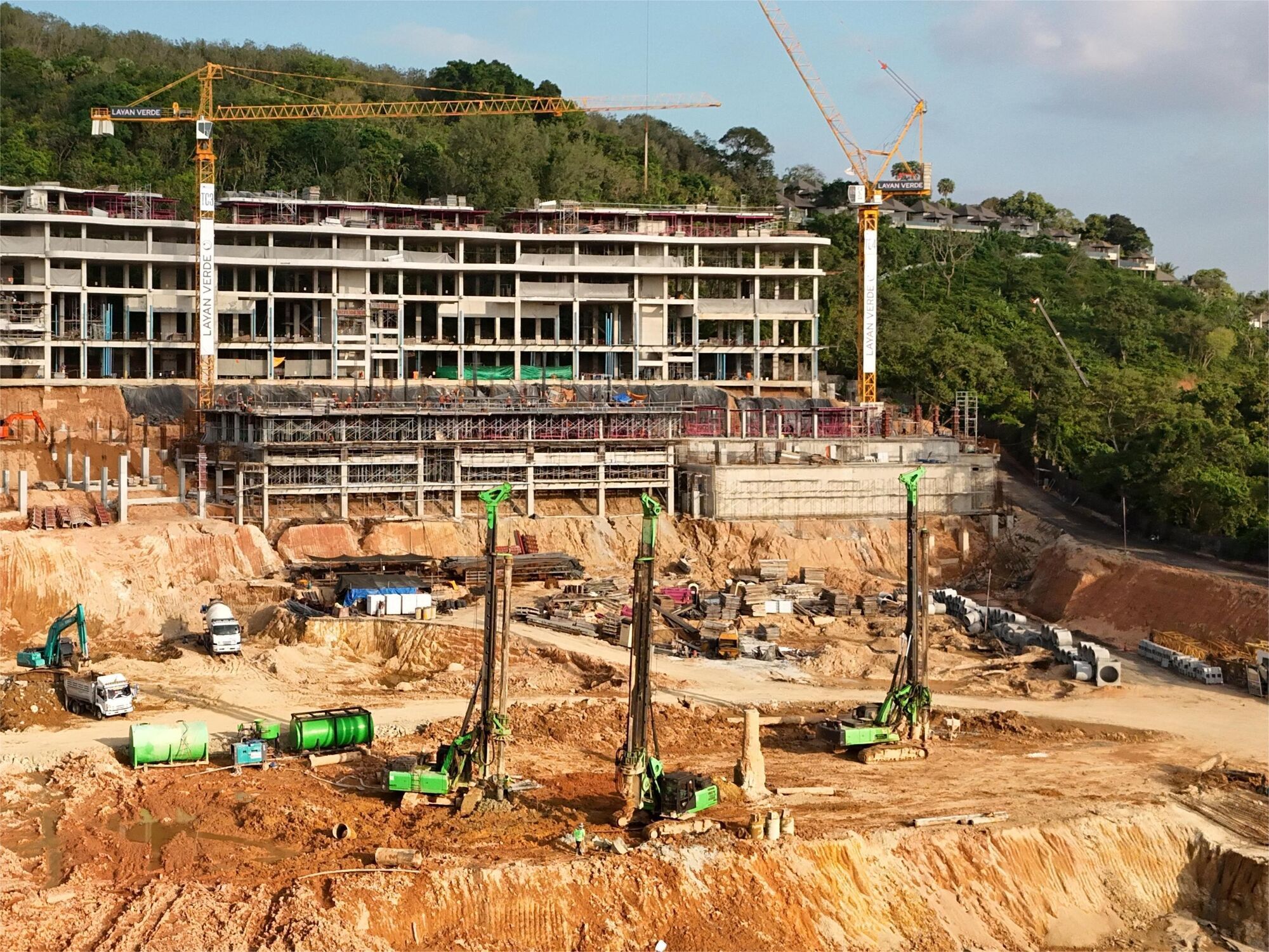 The total volume of placed structural concrete is 6,573 m³. In Zones 1, 2, and 3 of Building A5, the roof slab is cast, and installation and testing of the passenger elevator are in progress. In Buildings A2.1 and A2.2, construction of the foundation and water reservoirs is nearly complete, and first-floor slab works are underway. Foundation works continue for Buildings A3.1 and A4. Pile installation for Building B9 is progressing.