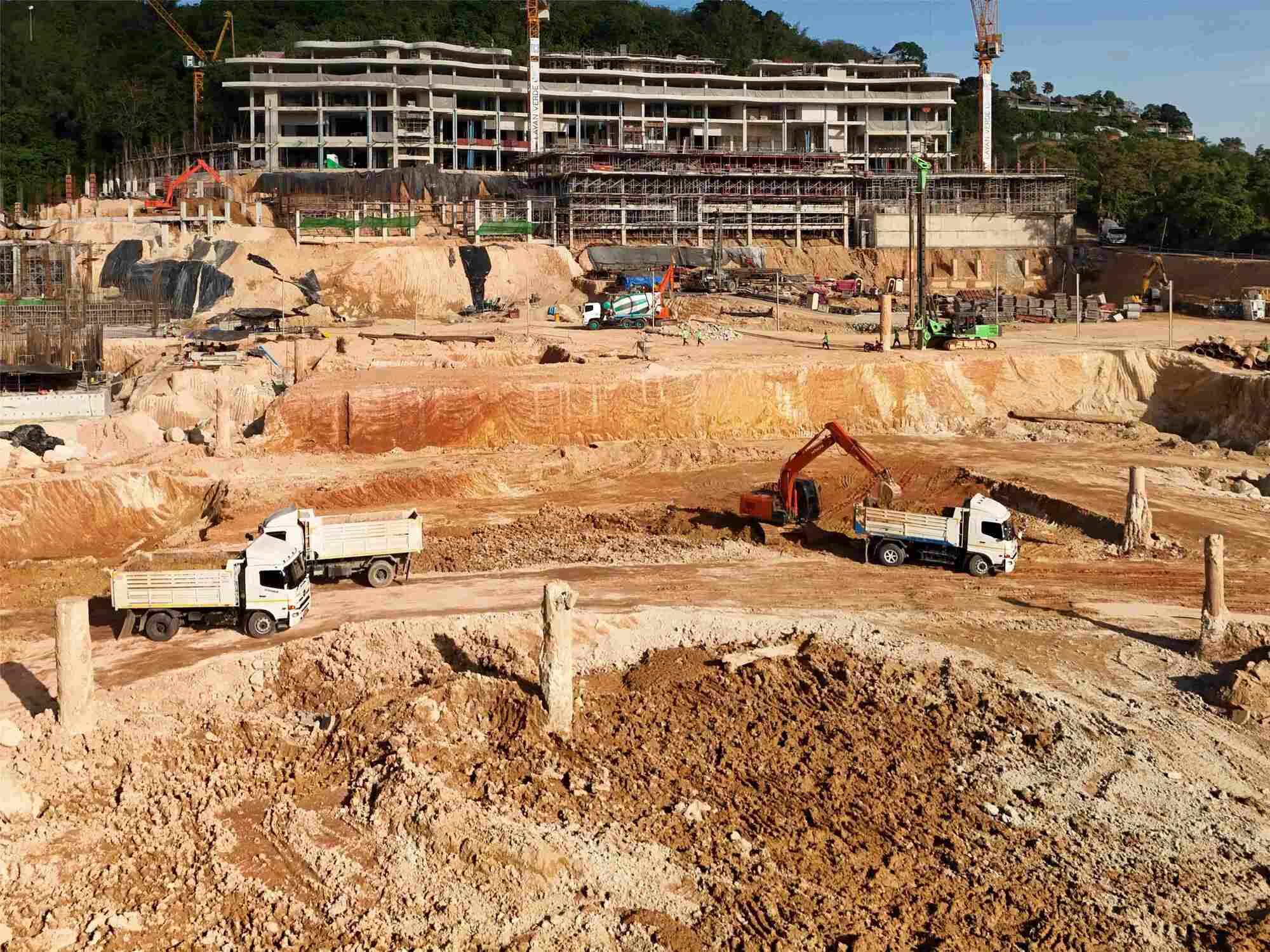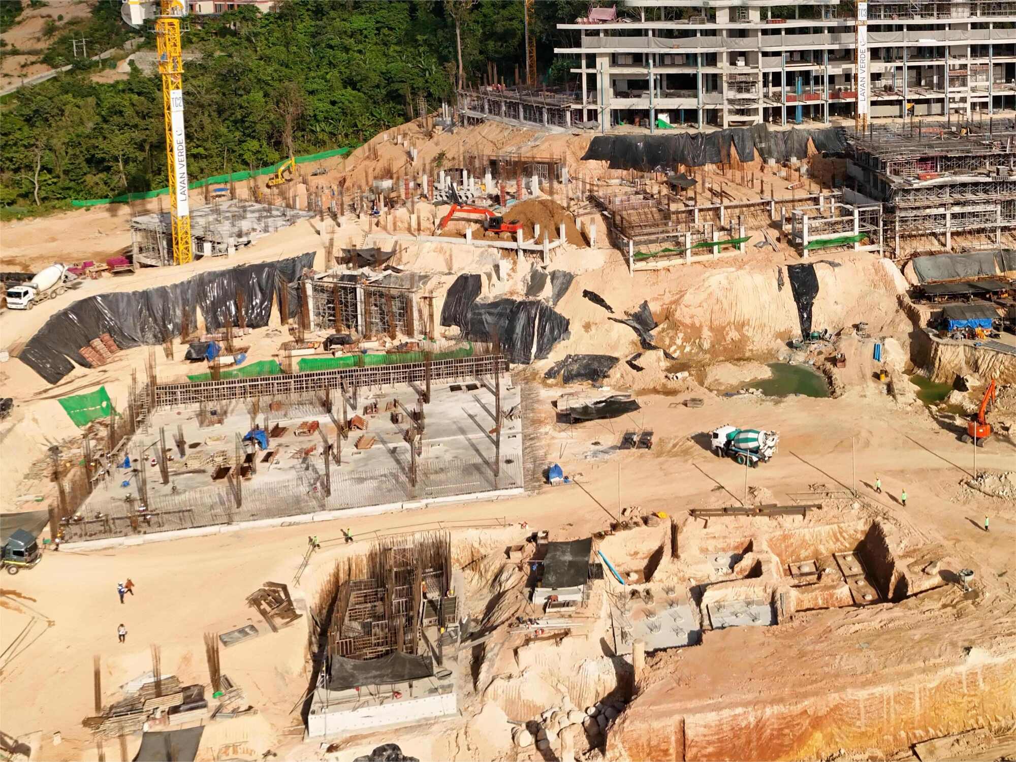 The total volume of placed structural concrete stands at 8,366 m³. Soil excavation continues, with a cumulative volume of 266,810 m³ removed. Installation of internal partition walls continues on the 2nd and 3rd floors of Building A5. In Building A2.1, casting of the 2nd-floor slab is complete, while in Building A2.2 the 3rd-floor slab is prepared for concrete placement. Formwork installation for the 2nd floor of Building A4 is underway. Foundation works for Building B8 continue, along with soil excavation works for Phase 2.