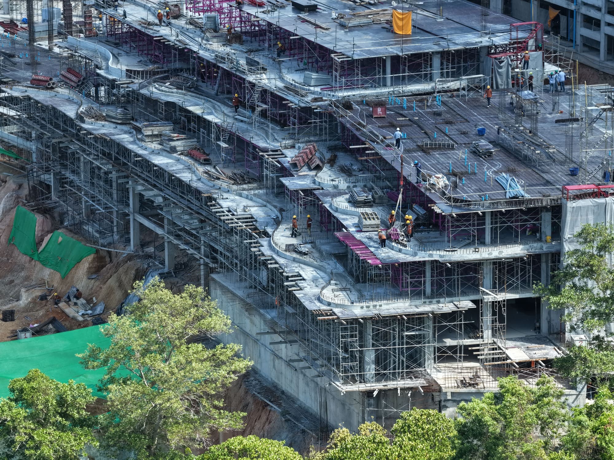 A total of 1,876 piles are installed at the Layan Verde construction site. Soil excavation continues, with a cumulative volume of 308,650 m³ removed. Installation of internal partition walls is underway on the 3rd and 4th floors of Building A5. In Building A2.1, formwork installation and reinforcement works are in progress for the 4th floor, along with scaffolding installation for construction of the 5th-floor slab of Building A2.2. Scaffolding installation continues for construction of the 1st-floor slab (Zone 1) of Building A3.1. Formwork installation and reinforcement works continue for Zone 1 of the 1st floor of Building A4. Foundation works continue in Building B8. A total of 10,982 m³ of concrete is placed for foundations and structural frame elements.